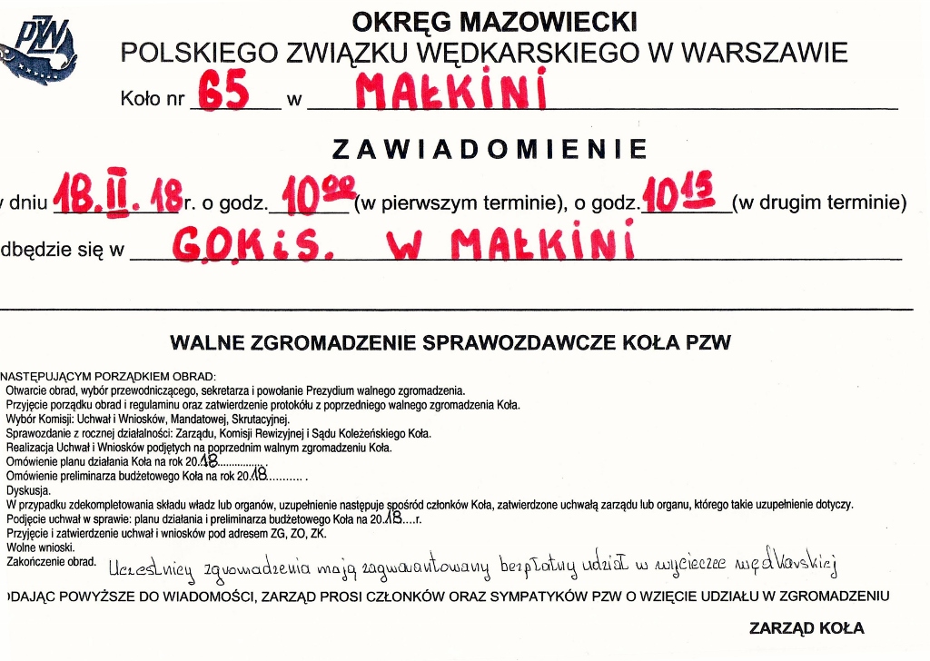 Okręg Mazowiecki Polskiego Związku Wędkarskiego w Warszawie wraz z Kołem nr 53 przy Ministerstwie Sprawiedliwości ogłaszają konkurs plastyczny dla dzieci i młodzieży z okazji odbywającego się w miesiącu kwietniu "Tygodnia Czystości Wód". więcej